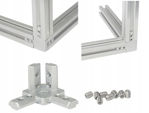 ŁĄCZNIK TRÓJSTRONNY NAROŻNIK DO PROFILI V-SLOT + 8 ŚRUB (2 NA RAMIE) -1 szt