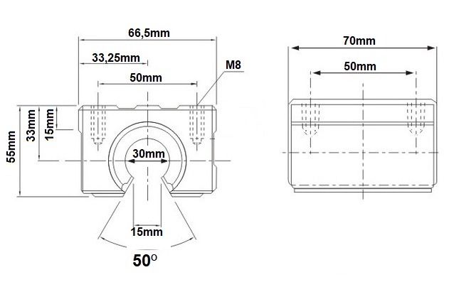 ŁOŻYSKO LINIOWE SBR30 UU OTWARTE W OBUDOWE DO WAŁKA FI 30 mm DO CNC