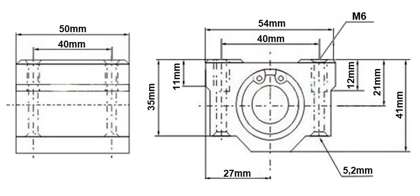 ŁOŻYSKO LINIOWE SMA 20 UU ZAMKNIĘTE W OBUDOWIE DO WAŁKA 20mm DO CNC
