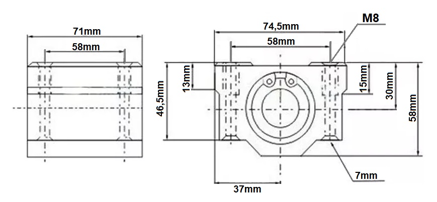 ✔️ Dzięki aluminiowej obudowie z gotowymi otworami montażowymi oraz wewnętrznemu łożysku kulkowemu (LM30UU), zapewnia cichą, stabilną i dokładną pracę.