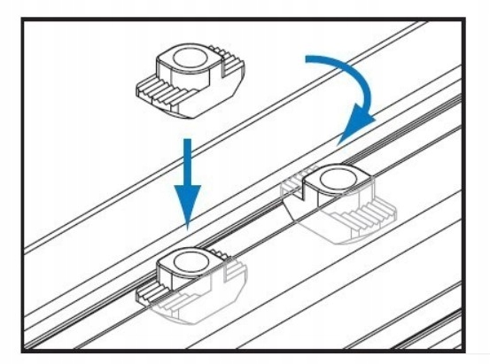 ✔️ Szczególną zaletą odróżniającą ten wpust od innych jest specjalnie zaprojektowany kształt pozwalający na włożenie go w dowolnym miejscu wzdłuż rowka profilu. Dzięki temu nie ma konieczności wsuwać tej nakrętki na jednym z końców profilu.