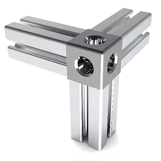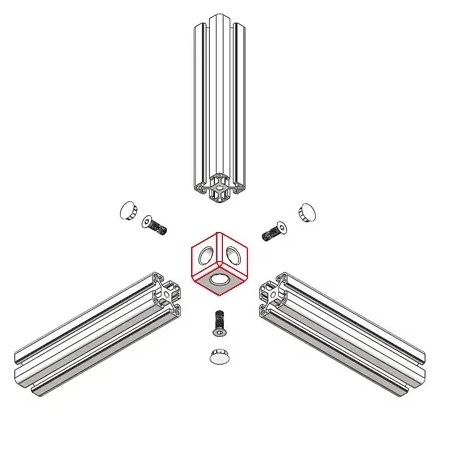 ✔️ Jest to element, który umożliwia łączenie trzech profili pod kątem 90°, co jest szczególnie przydatne w tworzeniu stabilnych, kwadratowych lub prostokątnych ram.