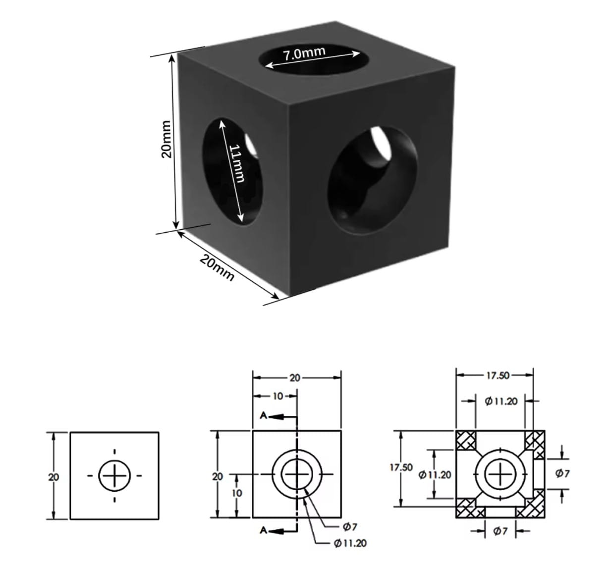 NAROŻNIK ŁĄCZNIK KĄTOWNIK TRÓJNIK KOSTKA 90 DO PROFILI V-SLOT TYP 20 czarny