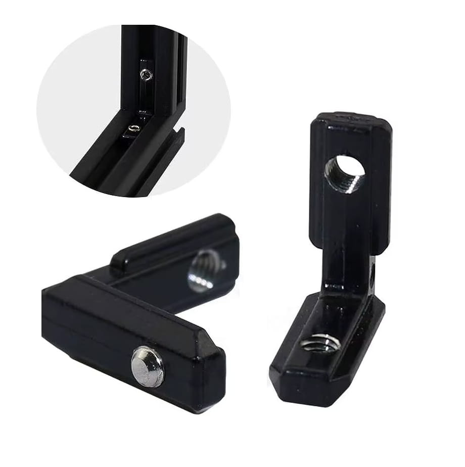 NAROŻNIK ŁĄCZNIK 90 STOPNI UKRYTY WEWNĘTRZNY TYPU V-SLOT CZARNY- 4 szt + 8 ŚRUBY M5