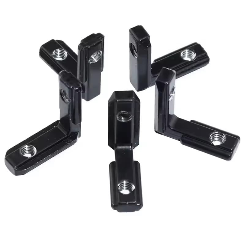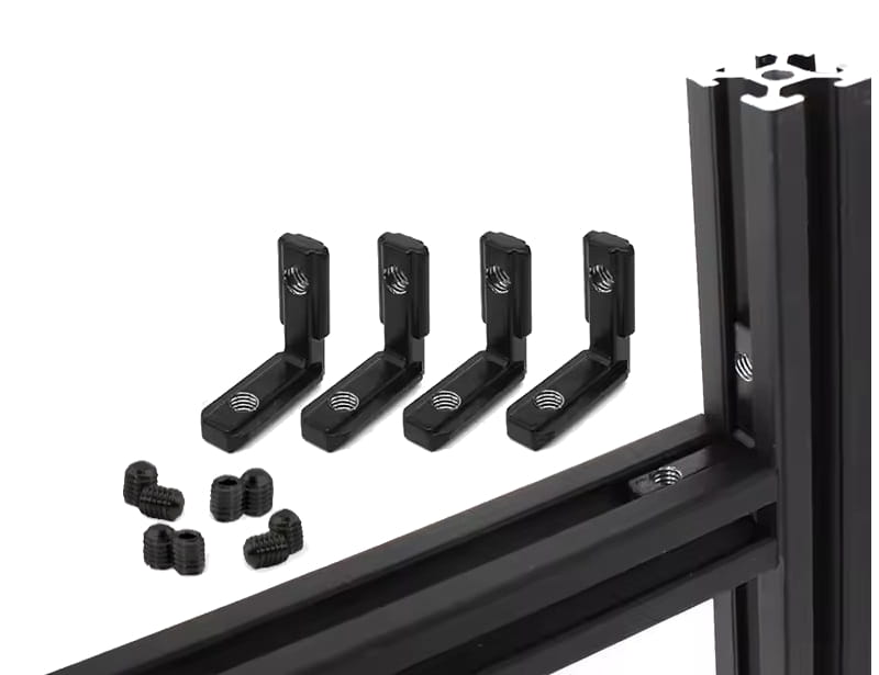 NAROŻNIK ŁĄCZNIK UKRYTY WEW. 90 STOPNI TYP V-SLOT CZARNY 4 szt.+8 ŚRUB M5