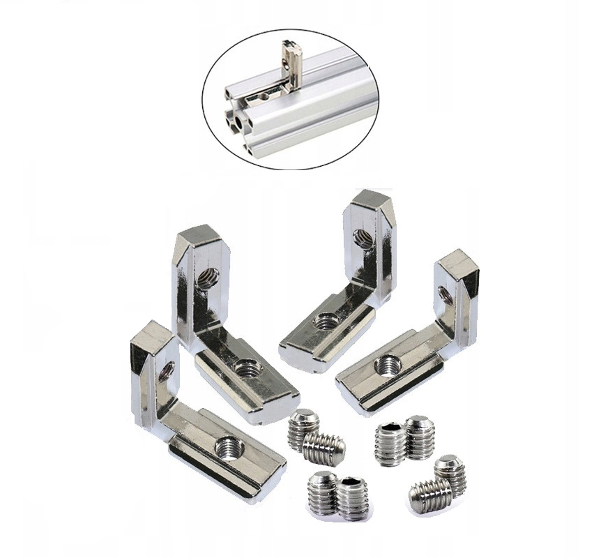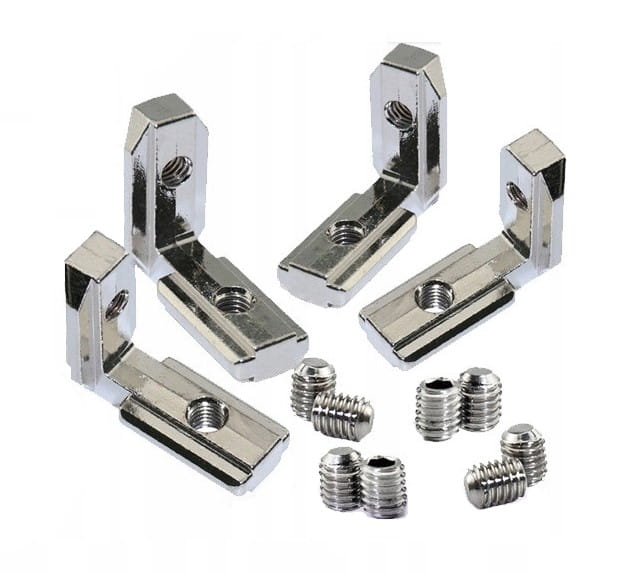 NAROŻNIK ŁĄCZNIK 90 STOPNI UKRYTY WEWNĘTRZNY TYPU V-SLOT SREBRNY - 4 szt + 8 ŚRUBY M5