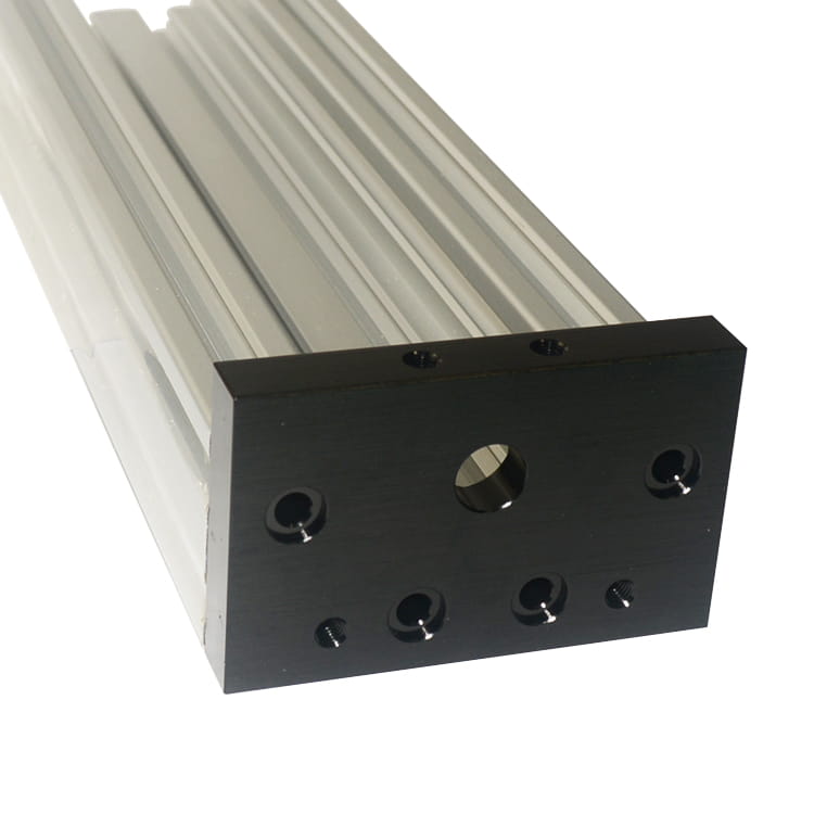 - dzięki otworom technicznym w prosty sposób można zamocować śrubę trapezową (napędową) typu ACME fi 8 mm