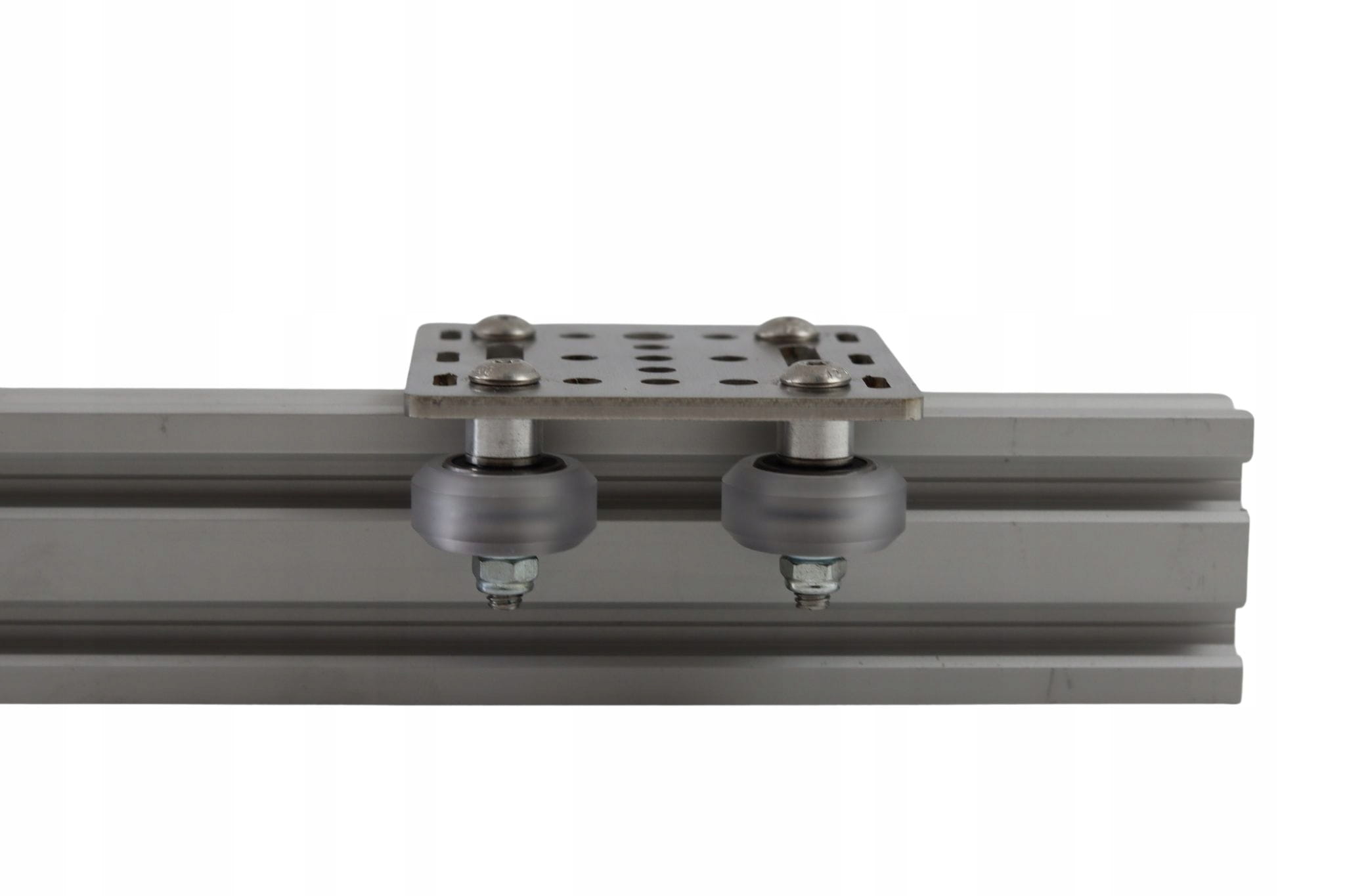 ✔️ Na profilach 2040, 2060, 2080 wózek z rolkami 24 mm umieszczamy zawsze na węższej ściance profilu, gdzie ma ona szerokość 20 mm (np. przy profilu 2060 gdzie jeden bok ma 60 mm, a drugi 20 mm, to właśnie na tym drugim osadzamy wózek).
