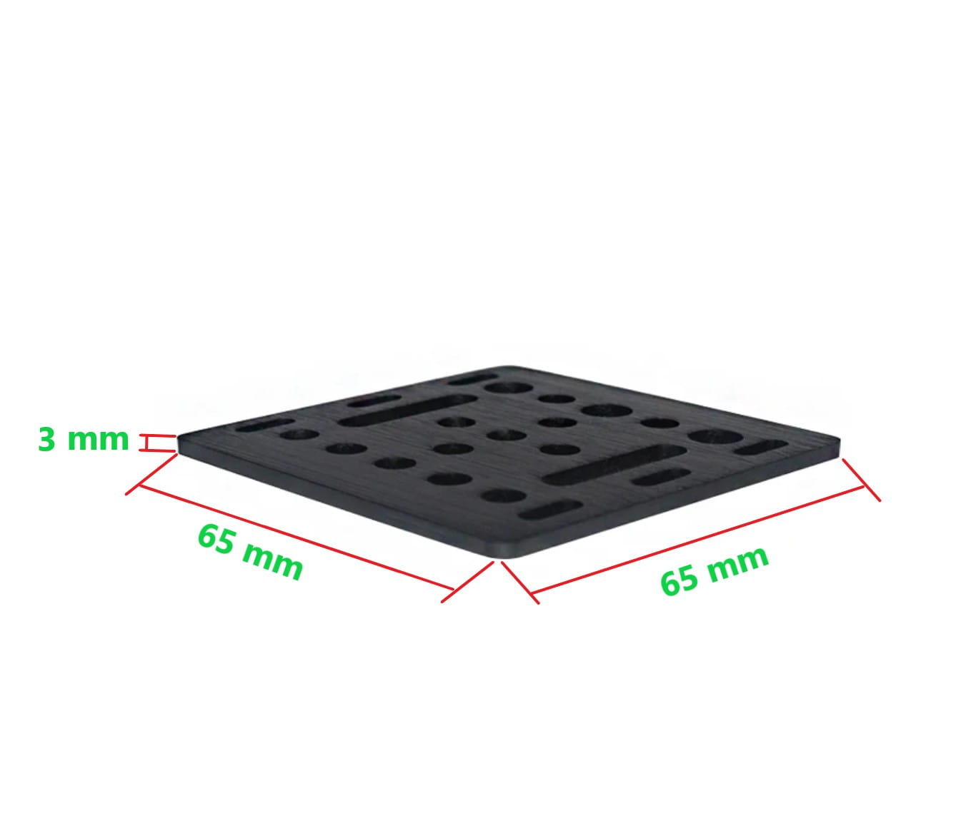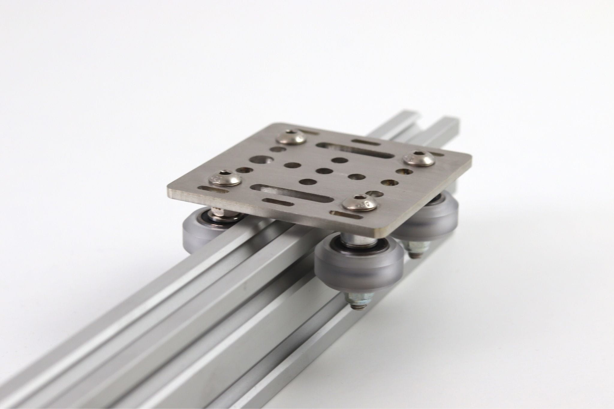 ✔️ Płytkę głównie wykorzystuje się do budowania wózków liniowych poruszających się po po bocznej ściance V-SLOT typu 20 mm. Dzięki wymiarom płytki 65x65x3 mm do wózka można zastosować większe rolki (24 mm) niż w wersji mini (15 mm).