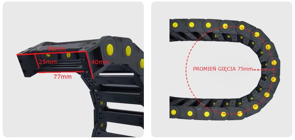 ✔️Prowadnik kablowy stosowany do osłony przewodów w ciągłym ruchu.
