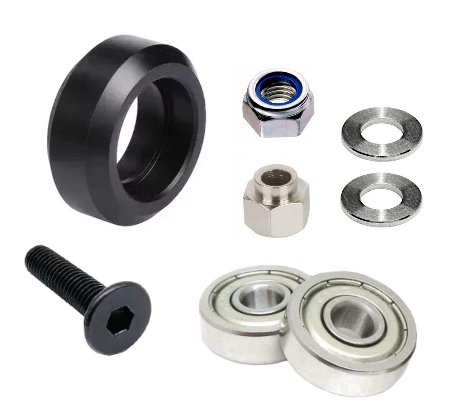 ✅ Zestaw zawiera wszystkie elementy niezbędne do montażu rolki, w tym tulejkę mimośrodową, dzięki której można precyzyjnie wyregulować docisk rolki np. do profila V-SLOT.