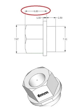 - wysokość małej tulejki - 2,5 mm