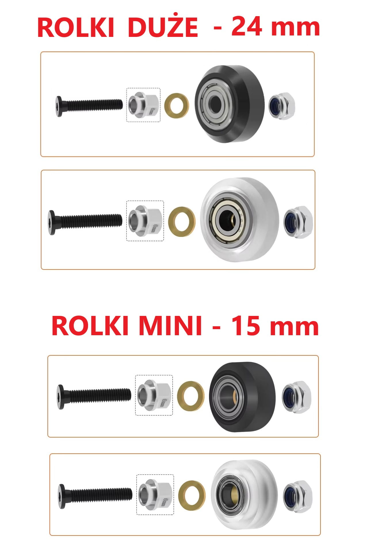- rolkami mini (15 mm) oraz standardowymi (24 mm)